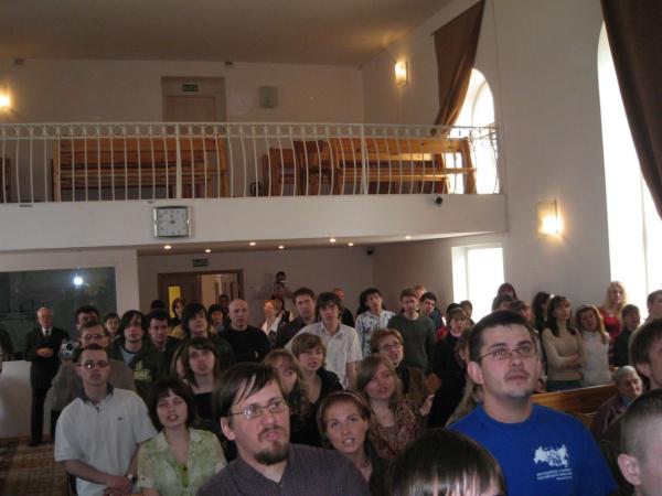 Так вот, второй частью являлась дискуссия на тему «Использование современной музыки в церковном служении». За «круглый стол» пригласили совершенно разных людей: ветерана баптистского братства Вальтера Артуровича Мицкевича, брата Олега (солиста группы «Пророк»), представителя муз. отдела РС ЕХБ, регента Второй Московской церкви Кирилла Гончаренко. Высказывалось множество мнений по данному вопросу и, я думаю, участники могли бы дискутировать на эту тему не один день. Но ввиду недостатка времени ограничились одним часом. Общими силами все пришли к нескольким выводам: музыка для богослужения должна отличаться от музыки для молодежного служения и евангелизации. А самое главное — в центре должно быть Слово Божие, ведь в песне прославления слова — это самое основное. Также музыка должна соответствовать возрасту и предпочтениям тех, кто сидит в зале. По мнению пастора церкви Дениса Левшина данный вопрос был очень актуален и очень хорошо, что «мы получили такие конкретные ответы на столь волнующие многих вопросы».